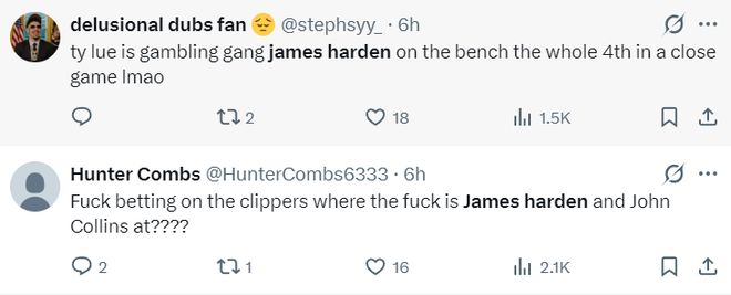 - 末節(jié)DNP哈登?美球迷瘋狂炮轟泰倫盧涉賭 六連勝場(chǎng)均26+7被小覷?